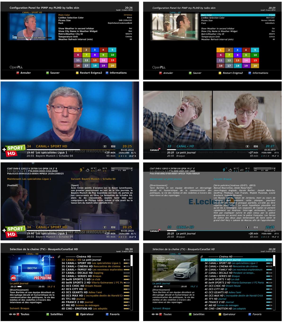If you want to download and try it, visit OpenPLi forum (http://openpli.org/forums/topic/32847-pimp-my-plihd-by-talbs/page-3#entry414952) and download latest .ipk file. I dont know by heart if there is already latest version on OpenPLi official addon server. Below are some old pics. Be aware that author returned to default PLi skin main infobar layout but there is a bit more room for SHD picons, so you can use them without a problem.
