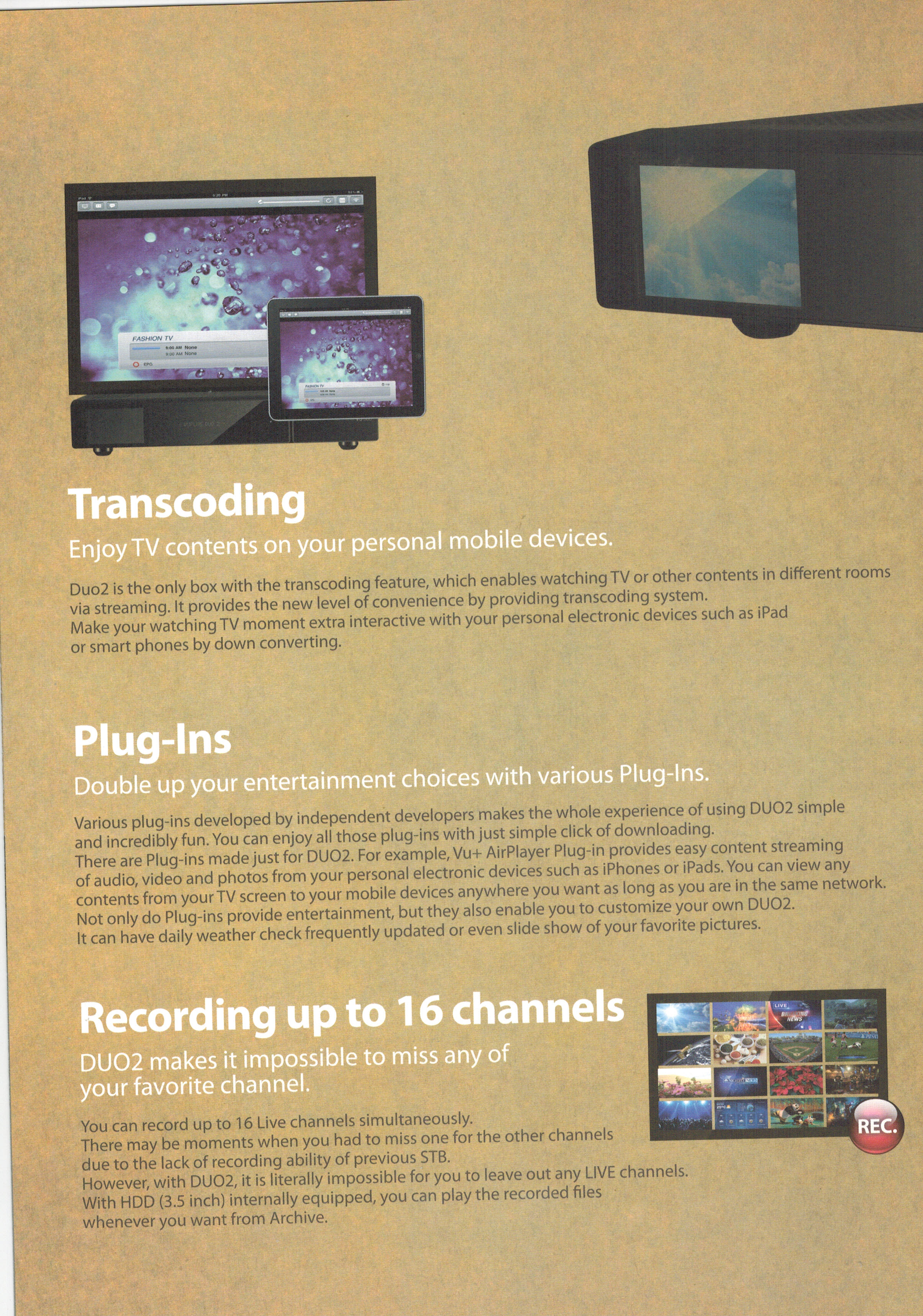 - Vu+ leaflet with all main features explained. I scanned it and you can see it below: