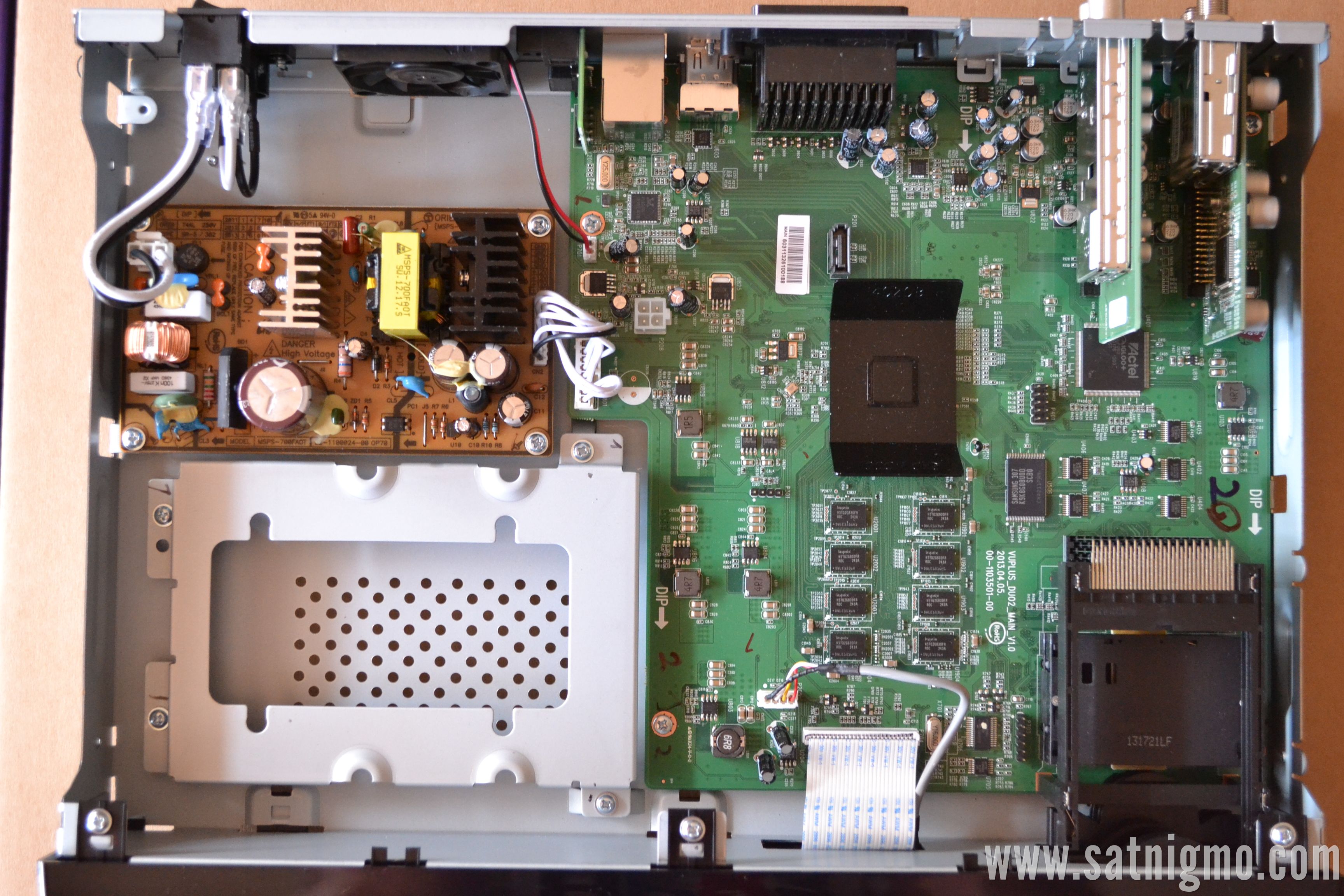 In the inside/left side of the receiver, we can find mounting tray for 2.5″ drive. Some of you maybe expected that Solo2 would accomodate 3.5″ size drives, but this is reserved for Duo2 which will also have bigger casing. Because 3.5″ size is not supported you are limited with drive space. I think that 1TB 5400RPM 2.5″ drive is the most rational decision if you have enough funds of course. Select reliable brand because you do not want to loose your recordings 😉