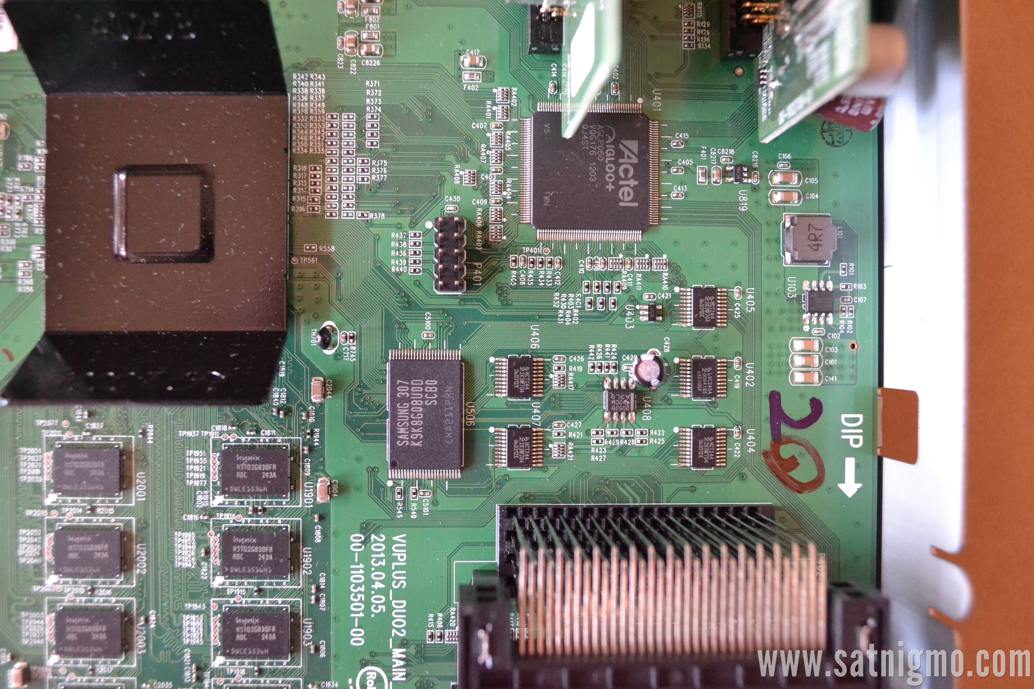 In the center there is new chip called bcm7356 which has 1.3Ghz. Vu+ decided to use standard passive cooling solution that can be found on all their receivers. I think that they could used bigger heatsink for the main chip in order to improve cooling.